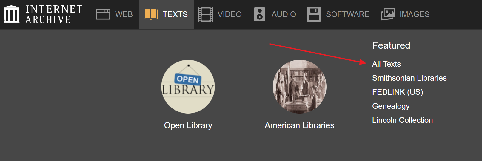 Za pristup knjigama idite na opciju Texts i ukucajte pojam za pretragu. Pretraga, doduše, nije baš intuitivna.