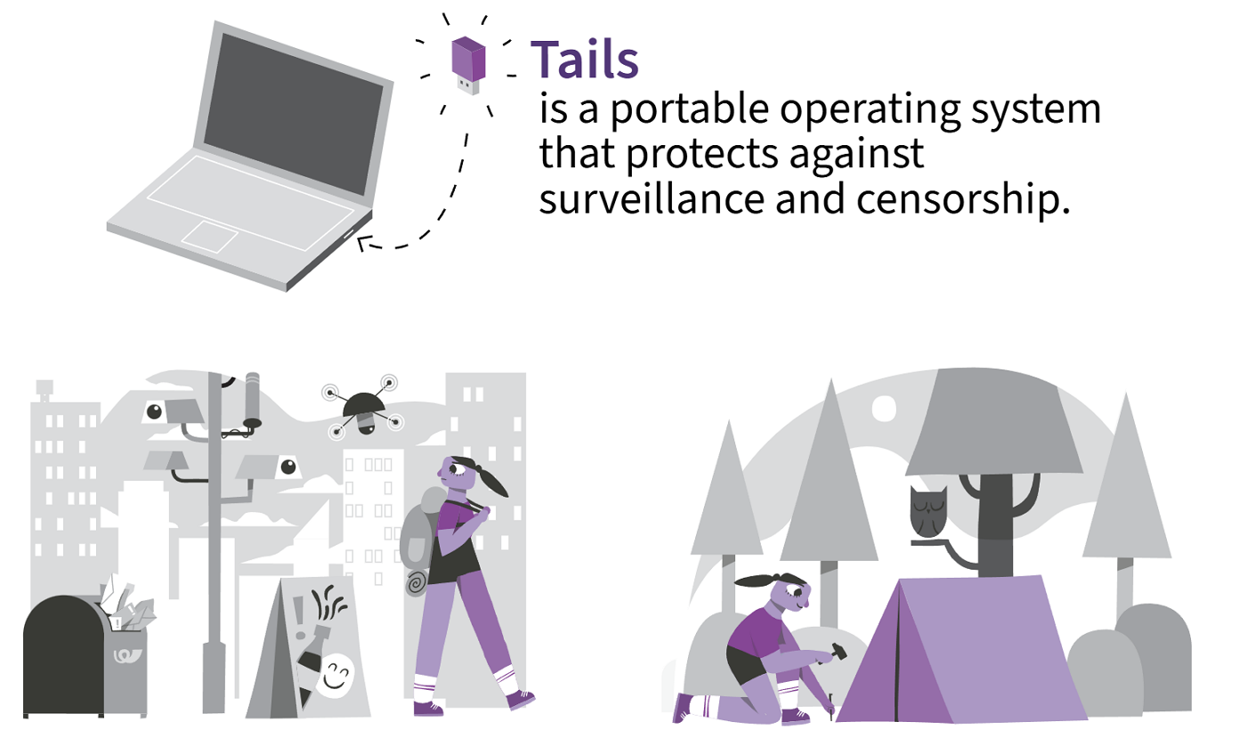 Tails predstavlja svojevrstan operativni sistem. U sebi ima preinstalirano nekoliko osnovnih aplikacija, kao što su veb pregledač, program za obradu teksta, program za ćaskanja i slično. Dok ga koristite ceo Internet saobraćaj protiče kroz TOR mrežu, koja je anonimna. Niko neće moći da vidi koje stranice posećujete. Postoji i nekoliko alata za enkripciju koji pružaju dodatnu bezbednost. Bitno je i reći da nikakav trag ne ostaje na računaru.