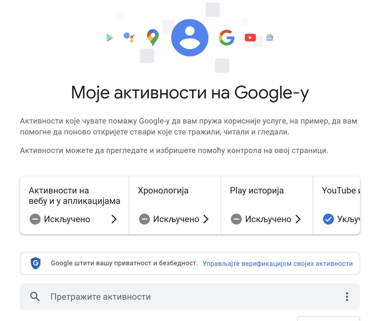 Da li ste znali da Google beleži veliki deo vaše aktivnosti dok koristite njegove servise? Sve što ukucate u pretragu, video-snimci koje gledate na YouTube, sajtovi koje otvarate u pregledaču Google Chrome, kao i aktivnosti na uređajima sa operativnim sistemom Android mogu biti povezani sa vašim nalogom – ukoliko ste prijavljeni i ako je uključeno čuvanje istorije.