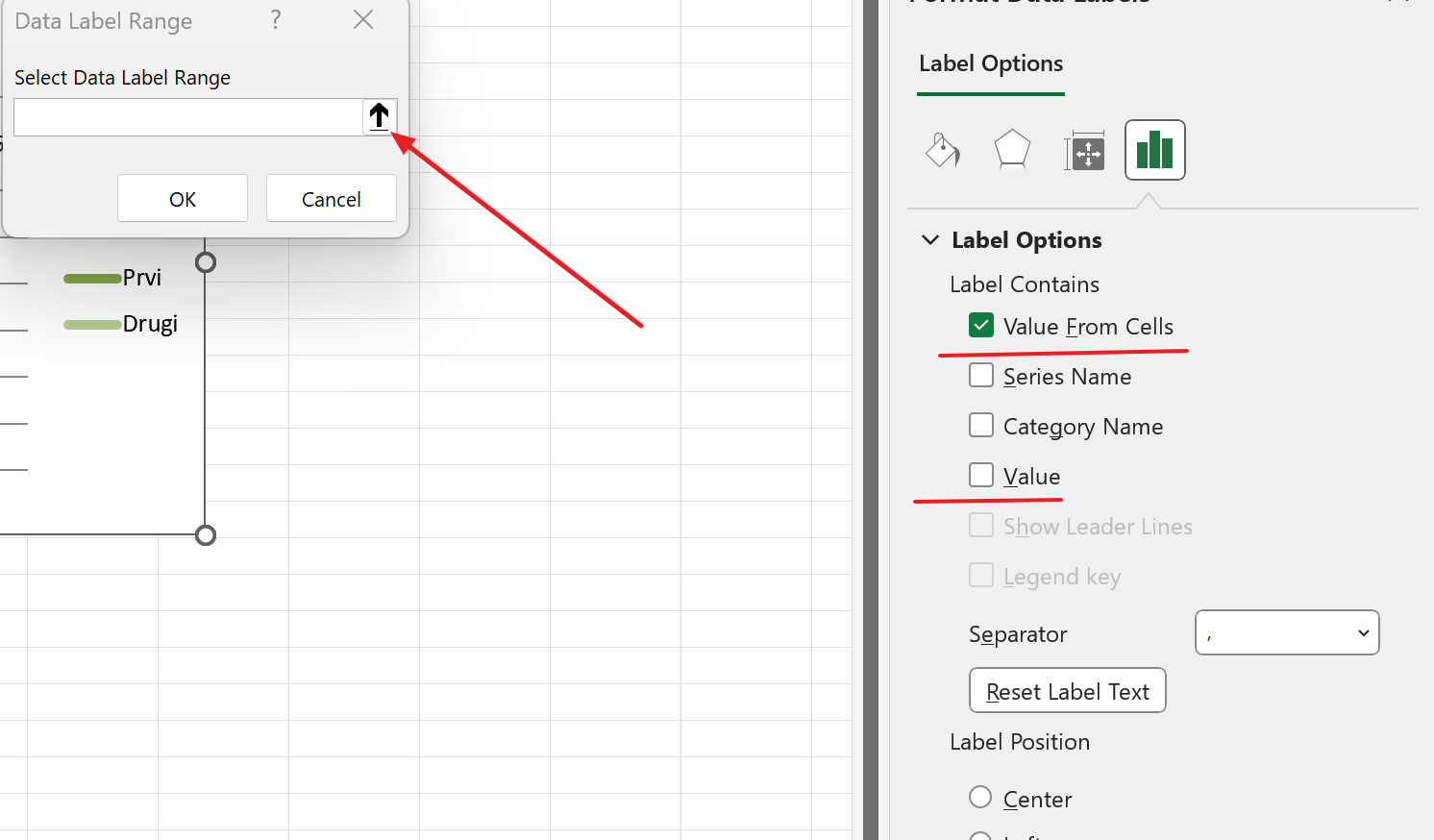 I tu će se pojaviti meni gde biramo vrednosti iz ćelija a ne vrednosti podataka.