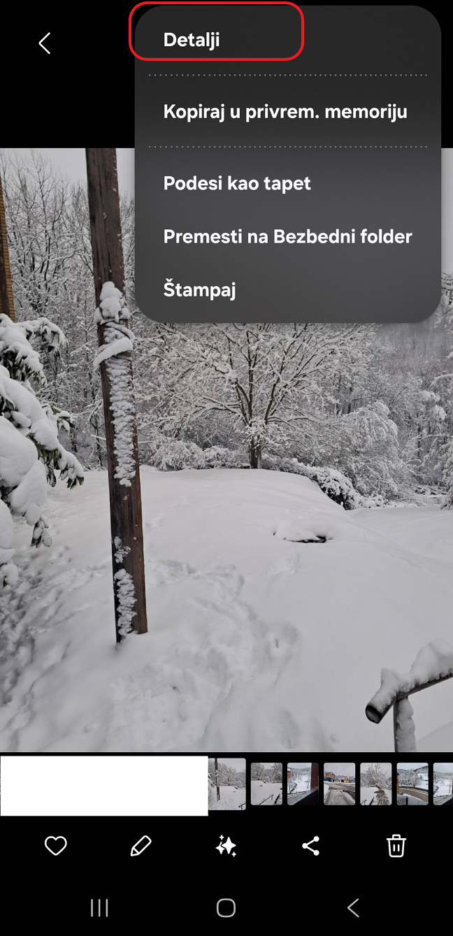 • Otvorite fotografiju i idite na opciju Details (Detalji).