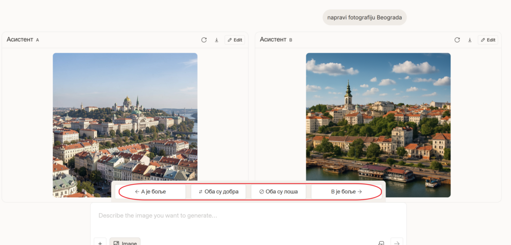 Sistem generiše dva odgovora različitih modela.