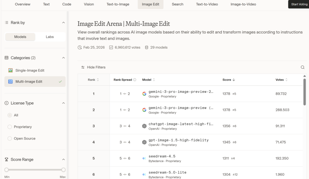 Na osnovu velikog broja glasova formira se javno dostupna rang-lista modela. Lista se redovno ažurira i prikazuje relativne performanse modela u realnim upitima korisnika.